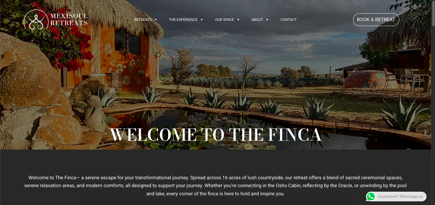 Mexisoul Retreats offers life-changing experiences in the heart of Mexico. While their physical location, "The Finca," was a premium sanctuary, their existing website failed to capture the serenity of the experience.